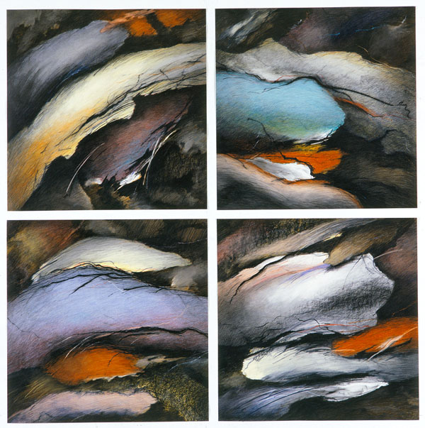 4 Teile, je 70 x 70 cm, Bleistift und Farbstift auf Papier